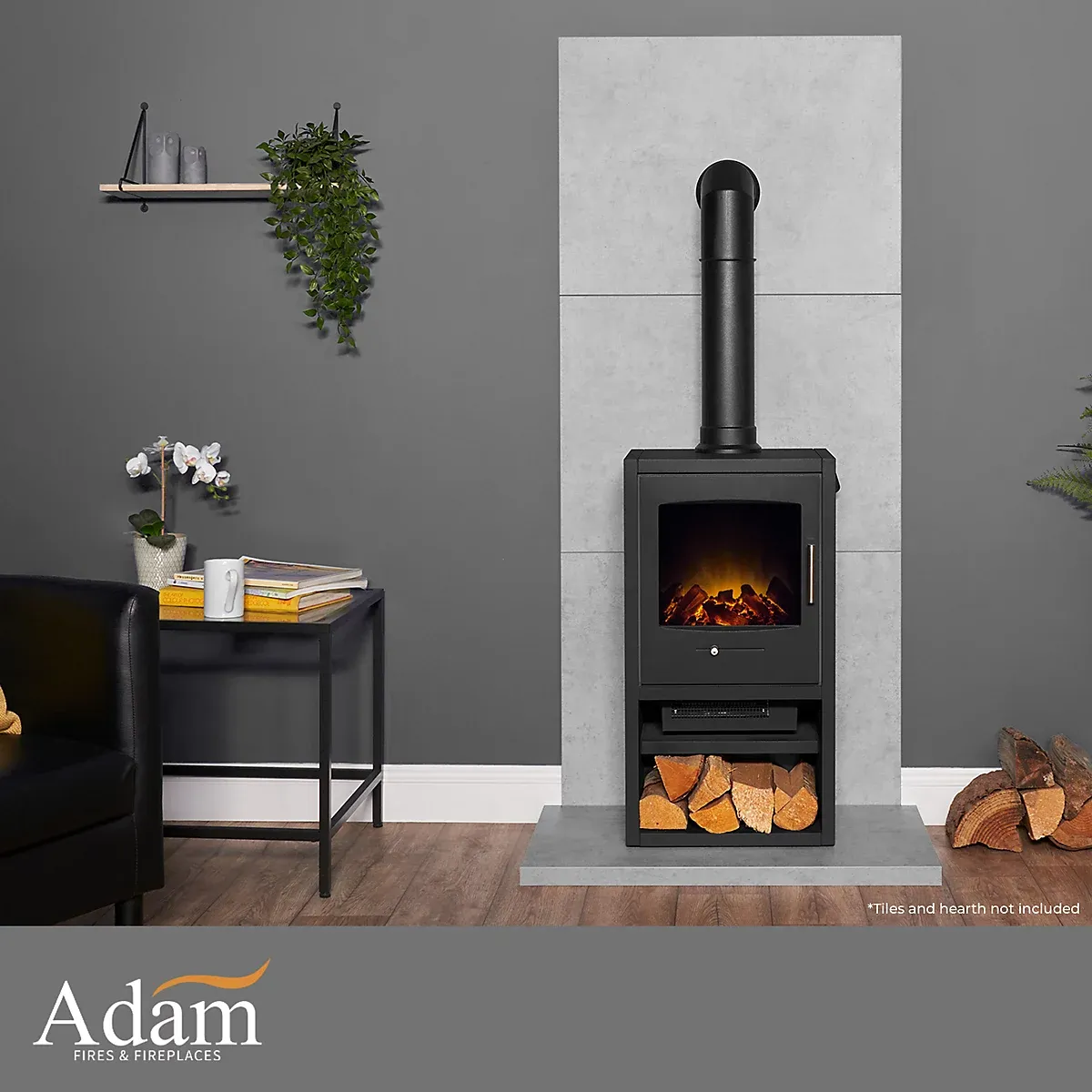 The Adam Bergen XL electric stove is a traditional stove with modern features. Supplied with a log storage area and a tall angled stove pipe, this stove will be the focal point of any room. Featuring two heat settings of 0.9kW and 1.8kW which can be adjusted with the thermostat as well as a flame only setting which allows you to use the Bergen XL all year round. The flame effect is created by the long lasting LEDs which simmers behind the realistic log fuel bed.