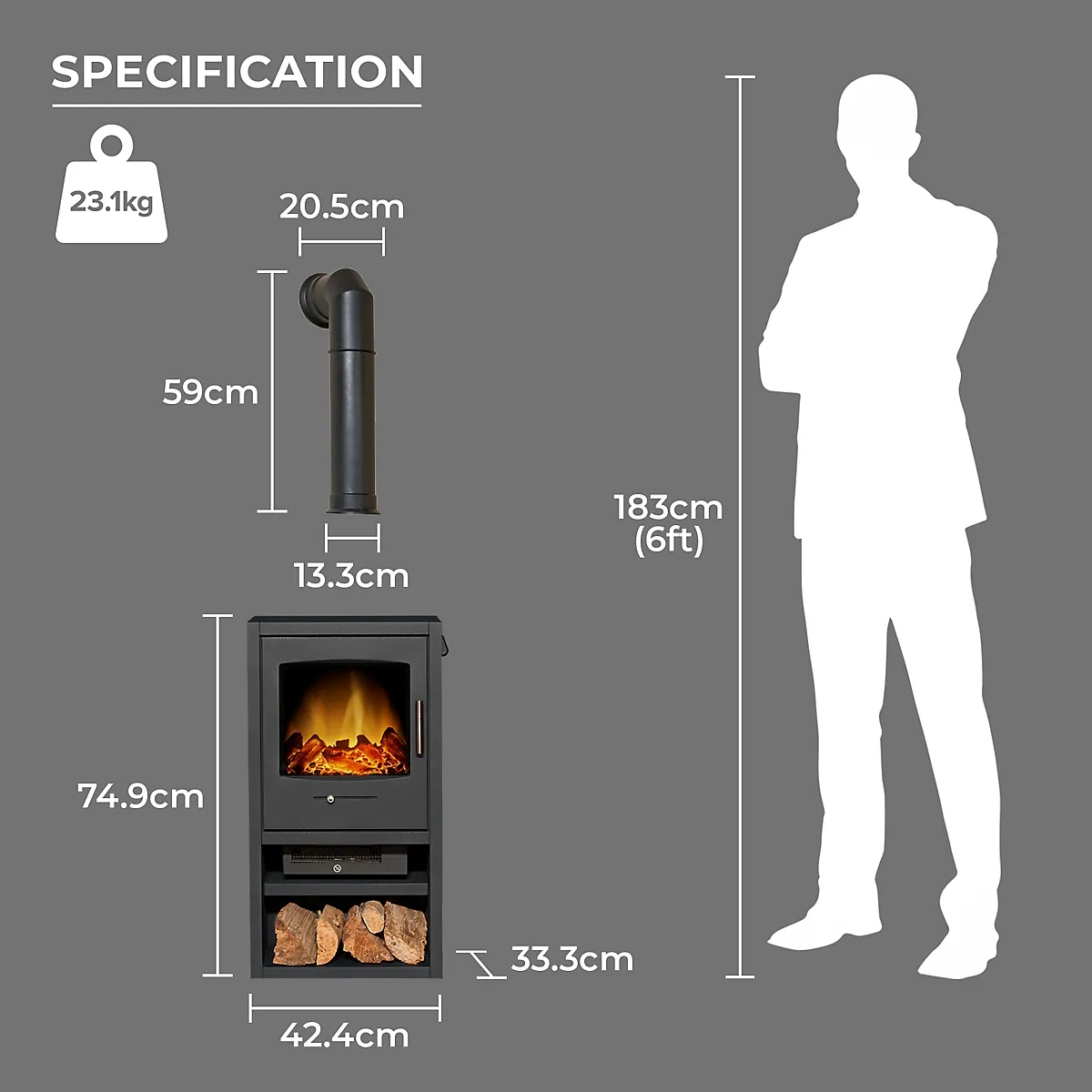 - LED flame effect & Log effect fuel bed