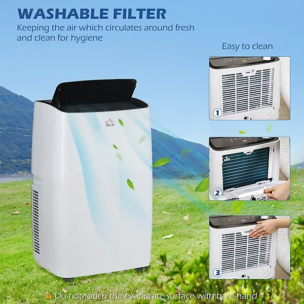A multi-use piece – this HOMCOM portable air conditioning unit comes with three functions: cool, dehumidify and fan. Three speed levels and 15-31℃ adjustable temperature to set to what suits you. Four swivel wheels and side handles to move around easily. The LED screen panel controls the air conditioning unit – also comes with a remote. Maximum cool: 14000 BTU/h. Liquid drainage pipe included. Window kit included to work with sliding doors.