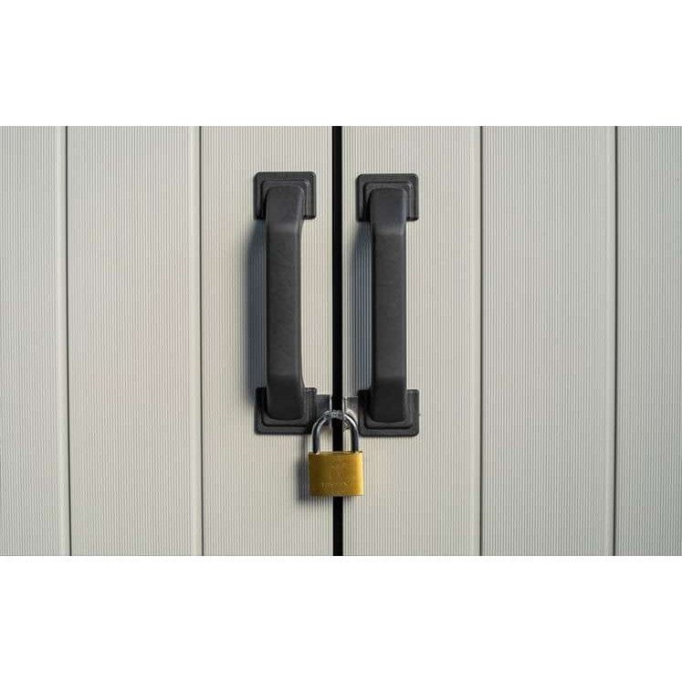 Ideally sized, the Premier Tall is a perfect choice for storing long gardening tools and other items such as BBQs and garden furniture. Featuring rib-reinforced panels for more durability, the weather-resistant walls are sturdy and maintenance free. With easy access due to its sloped threshold design and 1400 L capacity the Premier outdoor shed, is perfect for heavier items. The heavy duty floor panel protects the contents against rainwater or mud, while the lockable feature adds extra piece of mind. The Premier Tall also comes with a heavy-duty 105° carpenters nickel hinge and adjustable brackets that provide an extra storage opportunity so you can install two extra shelves.